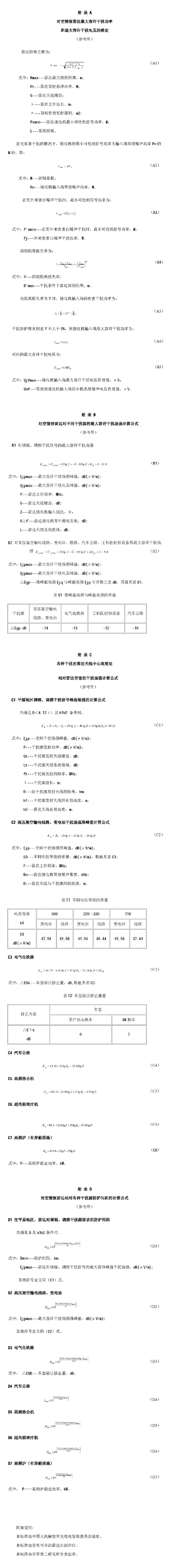 注:a.特殊情況下,按干擾防護準則的要求發展,參照有關(guān)附錄進行測算保持穩定。