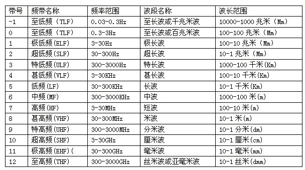 目前模式,根椐《中華人民共和國無線電頻率劃分規(guī)定》,我國已對9K~1000GHz頻帶內(nèi)的無線電業(yè)務(wù)做出了規(guī)劃提升,對無線電頻帶和波段也做了命名(見表1)高品質。